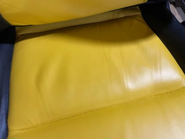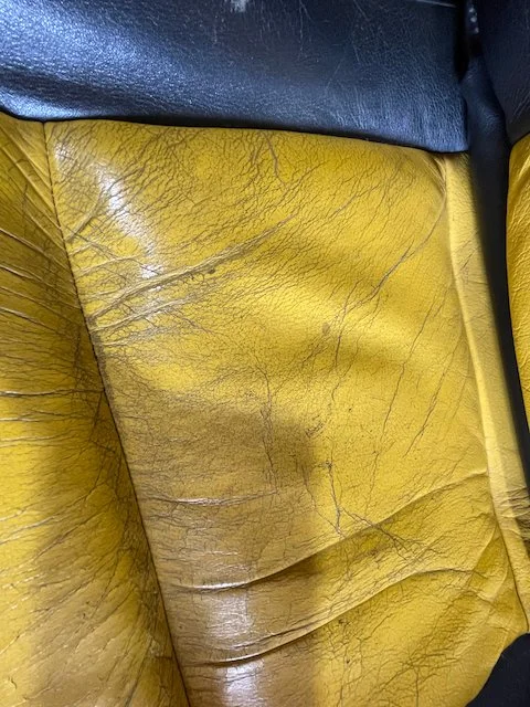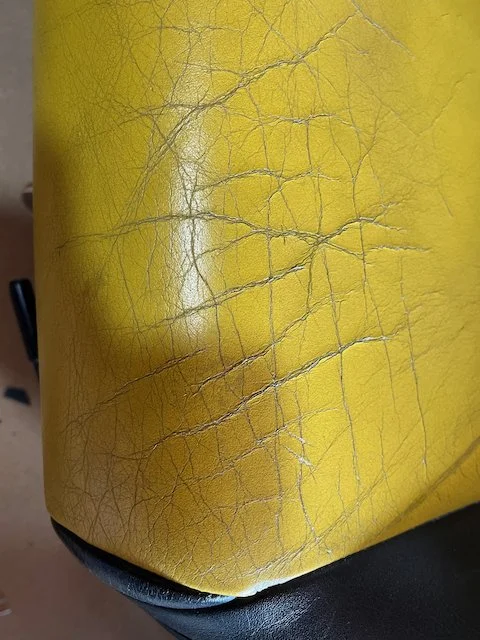 Prominent cracking across the yellow leather centre panels